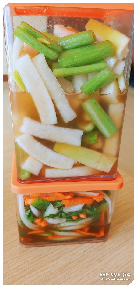 피클은 무와 셀러리를 넣고 만들었어요.