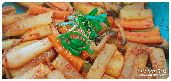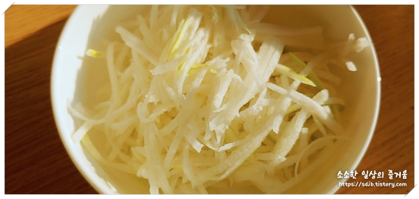 재료: 무 1/4, 당근, 대파, 버섯, 깨,