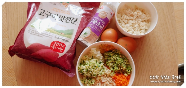 집에 유기농 통밀가루가 있어서 전분가루 첨가 후 사용했습니다.