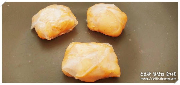 * 서로 달라붙지 붙지 않게 주의하세요.