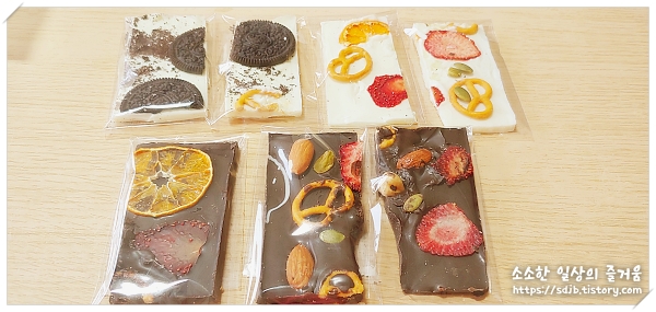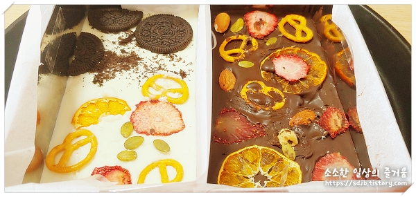 아이랑 만들어본 바크 초콜릿이에요.