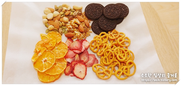 초콜릿과 건조과일, 견과류 등을 넣어